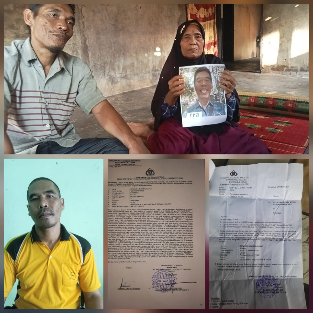 Di dampingi aljoni matrial Harahap salah seorang anaknya , Samita Boru siregar tak kuasa menahan tangis saat menceritakan bagai mana kondisi anaknya yang sudah menjadi korban pengeroyokan di lokasi kebun sawit milik kud, tempat ia bekerja sebagai humas pada tanggal 24 Juni 2024 lalu ,