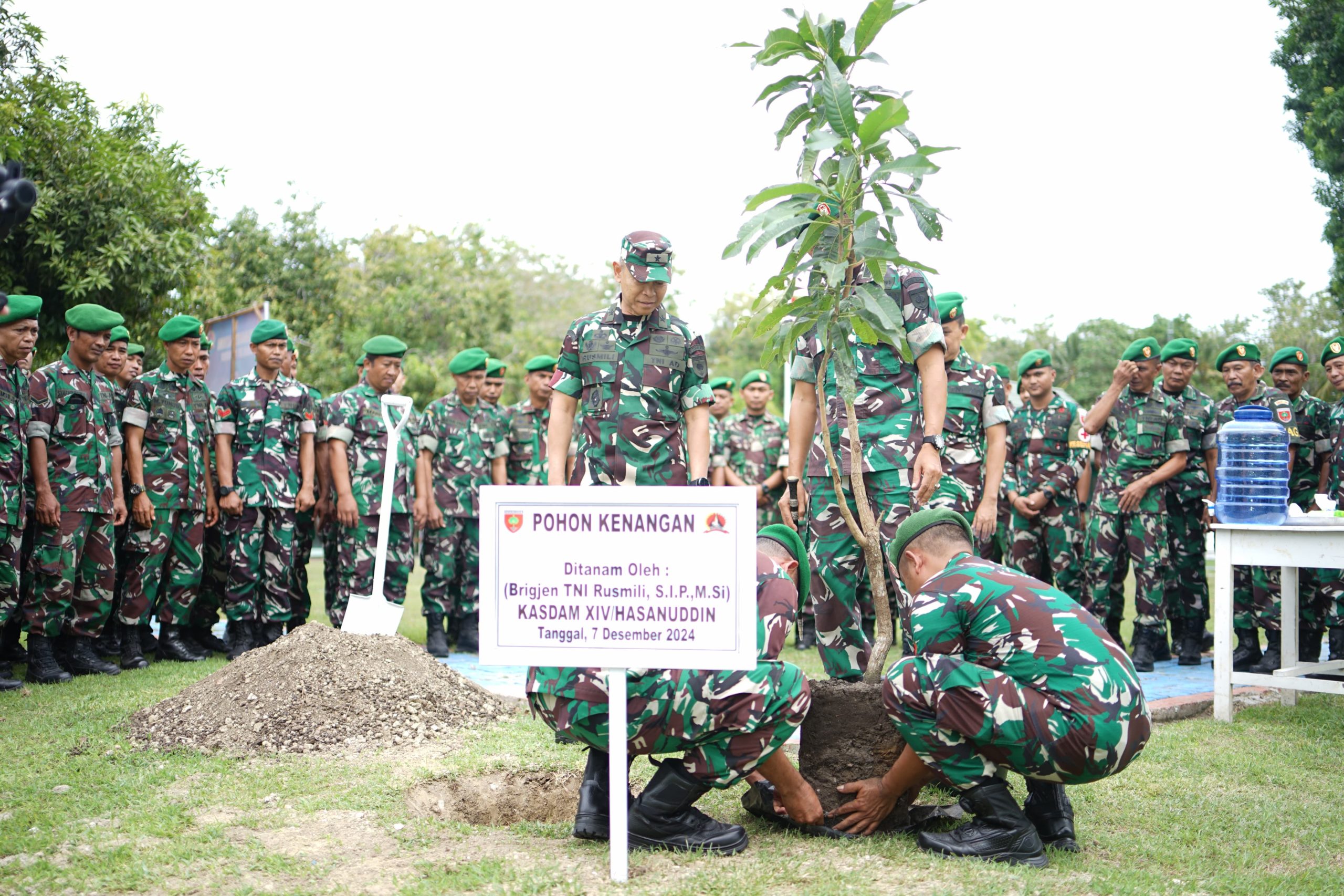 Setelah menerima penyambutan, Kasdam XIV/Hsn didampingi Dandim 1401/Majene melakukan penanaman pohon di Makodim 1401/Majene yang merupakan salah satu agenda dalam kunjungannya. Kegiatan penanaman pohon ini sebagai salah satu simbolis wujud kepedulian TNI terhadap kelestarian lingkungan.