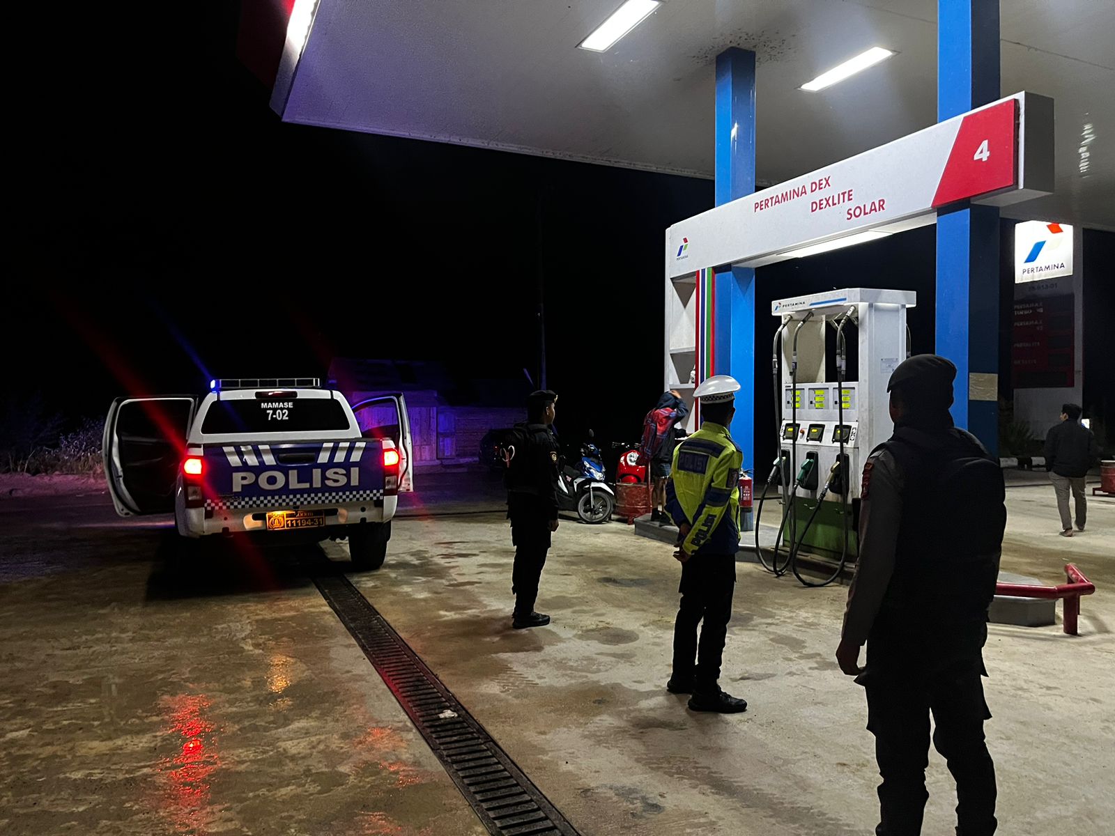 “personel Satuan Lalu Lintas Polres Mamasa melaksanakan Blue Light Patrol. Kegiatan patroli malam ini dilakukan oleh Regu III piket lantas dengan menyalakan lampu rotator kendaraan dinas sebagai wujud kehadiran Polri di tengah masyarakat, 13 Desember 2024