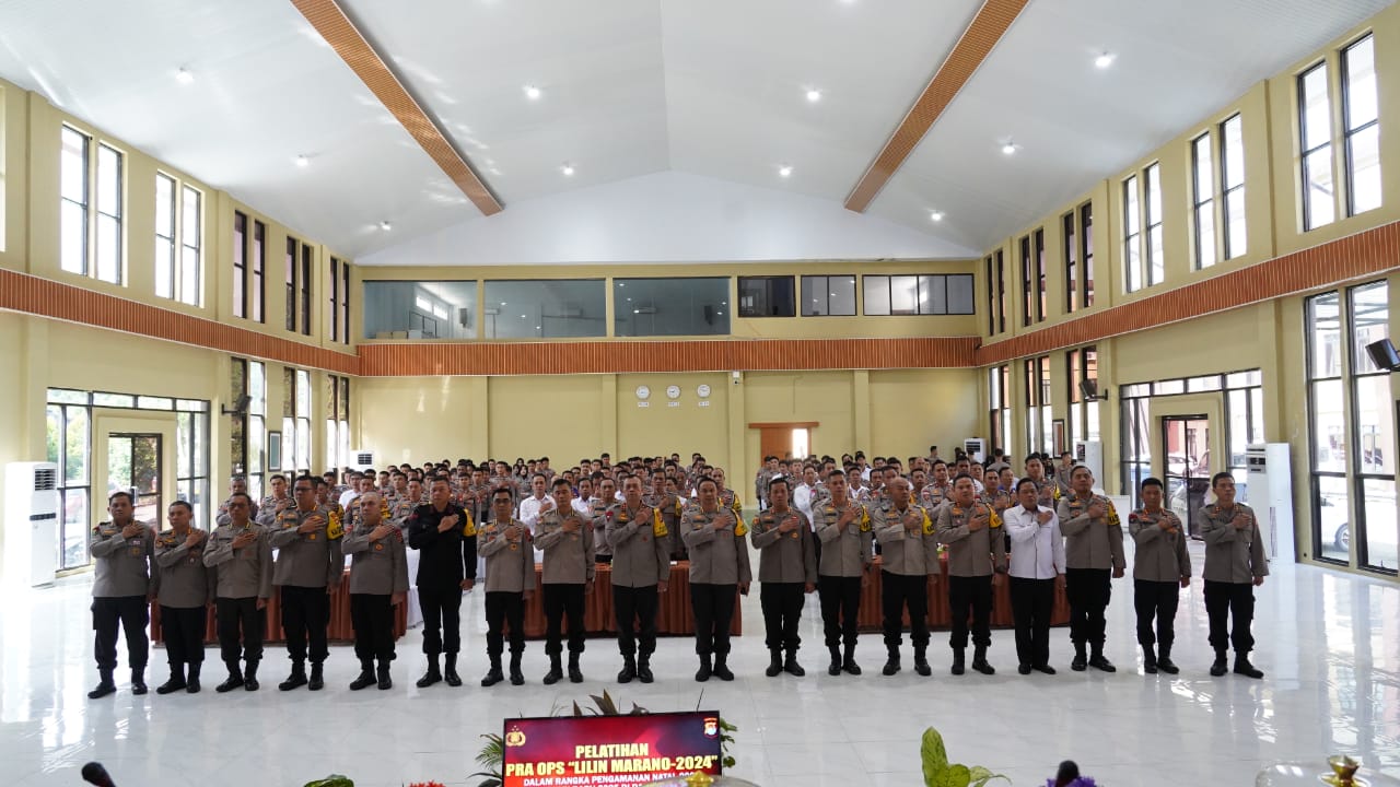 Pelatihan Pra OPS Lilin Marano ini dibuka langsung oleh Kapolda Sulbar Irjen Pol Adang Ginanjar dihadiri para pejabat utama, Kapolres jajaran dan seluruh peserta Pra Operasi dari Satker hingga jajaran, Kamis (19/12/24) di Aula Marannu Mapolda.