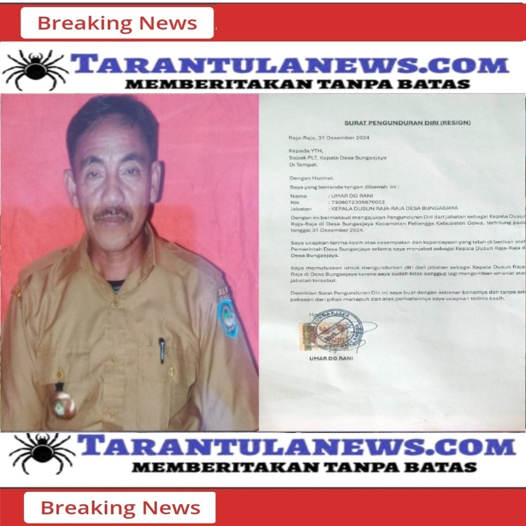 TarantulaNews.com – Kepala Dusun raja raja Desa Bunga Ejaya Kecamatan Pallangga Kabupaten Gowa mengundurkan diri dari jabatannya setelah viral dibeberapa pemberitaan terkait dugaan menggunakan ijazah palsu yang dimana tidak sesuai nama di kartu tanda penduduk. Ijazah palsu tersebut digunakan Umar Dg Rani menduduki jabatan sebagai kepala dusun selama empat belas tahun.
