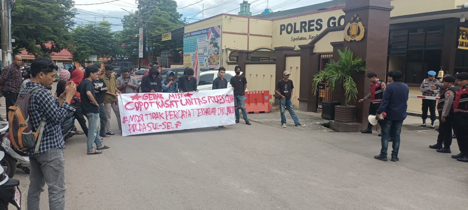 Polres Gowa pertama didemo oleh Forum Kajian Dan Gerakan Advokasi Kerakyatan (FK GARDA) dengan tuntutan Copot Kasatlantas dan Kanit Regident yang melakukan pungli dalam pembuatan SIM, Berselang dua hari Forum Kajian Mahasiswa Lintas Makassar (FORKAM LIMA) juga melakukan unjuk rasa dengan issue dan tuntutan yang sama.