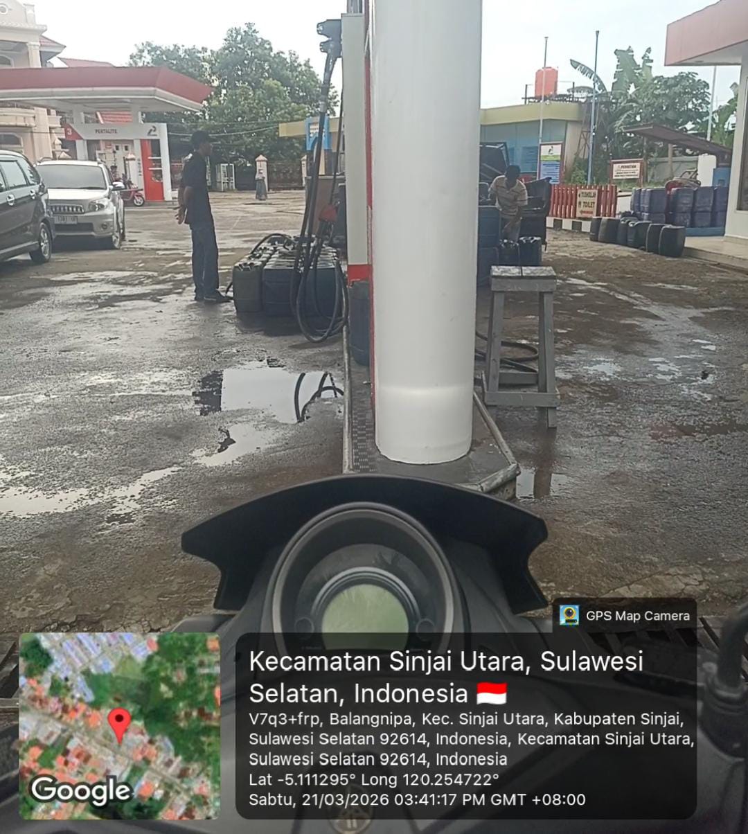 Berdasarkan pantauan langsung awak media di lokasi Sabtu Sore 21 Maret 2026, Terlihat Para pengendara yang mengangkut jerigen dalam jumlah banyak secara bebas bergantian mengisi BBM bersubsidi ke dalam jerigen.